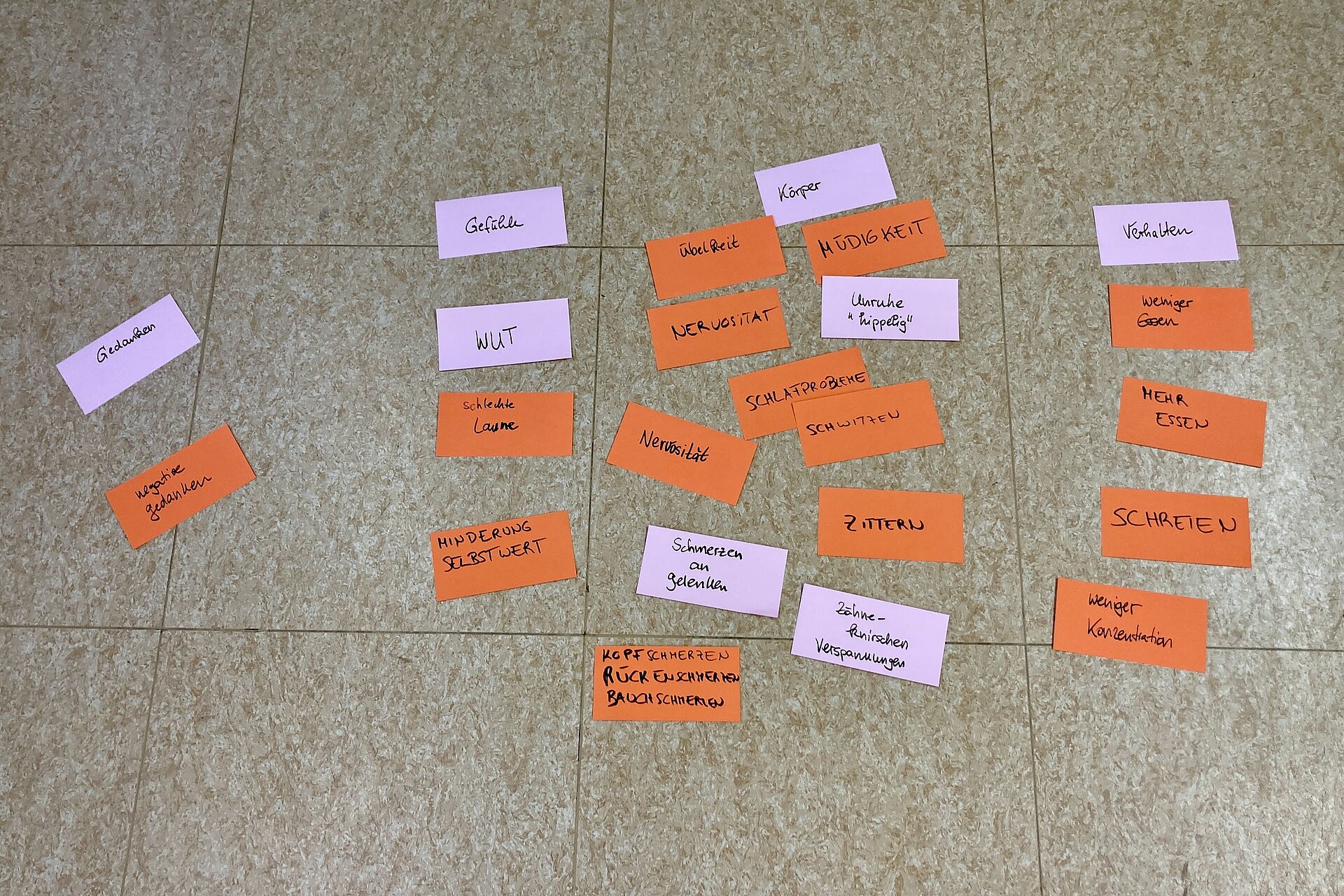 Im weiteren Verlauf konnten positive Bewältigungsstrategien für Stress auf bedrucktes Origamipapier geschrieben und anschließend daraus kleine Herzen geformt werden. Auch diese kreative Übung nahmen die Teilnehmenden sehr positiv auf.